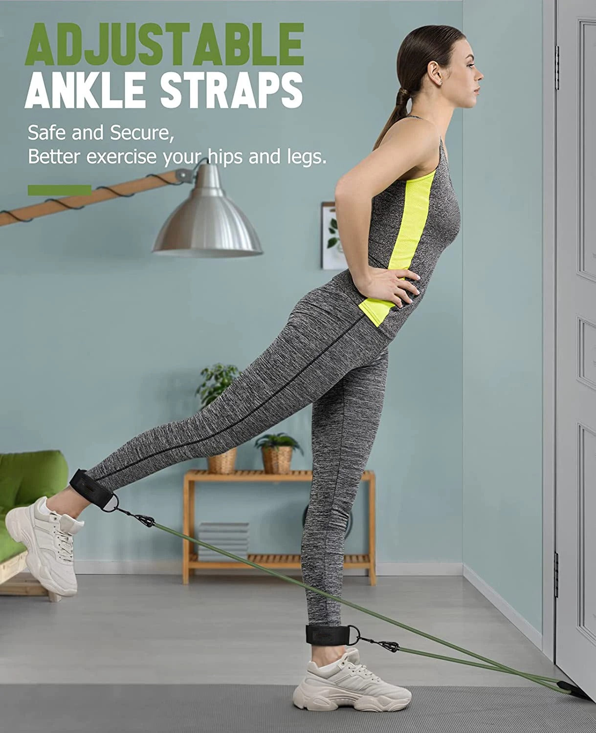 Additional Accessories: Complete with door anchor, handles, and ankle straps, this set provides everything you need for a full-body workout experience. Create a personalized fitness routine tailored to your goals.